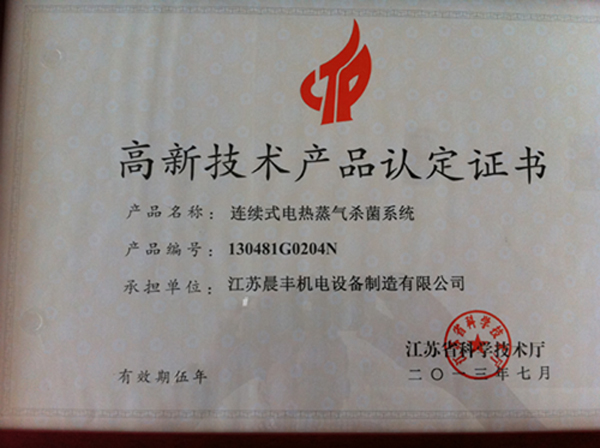 ISO14001環境管理體系認證。公司產品以通過“CCC”、“CE”、“ROHS”認證.